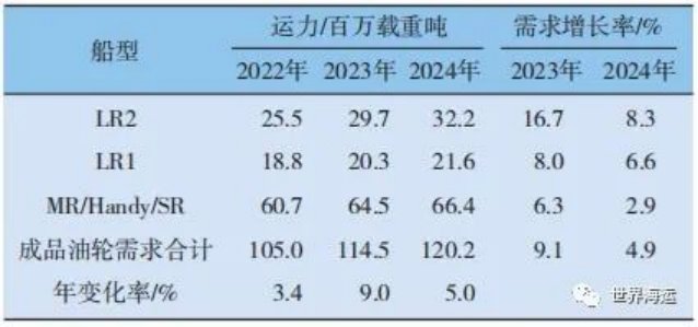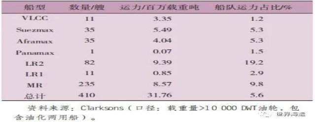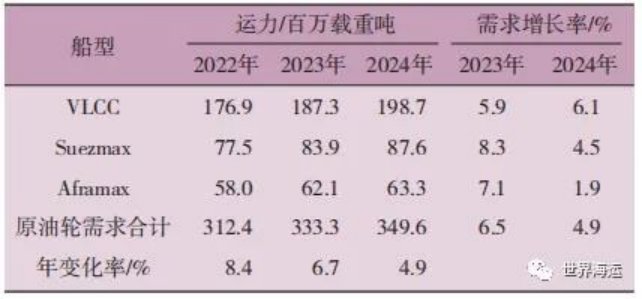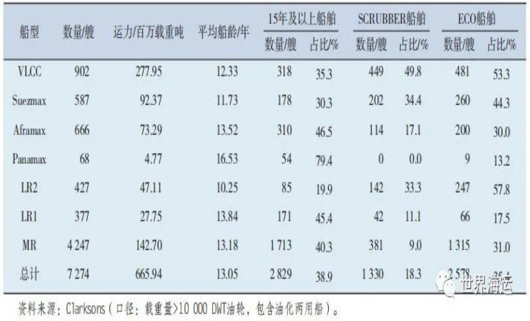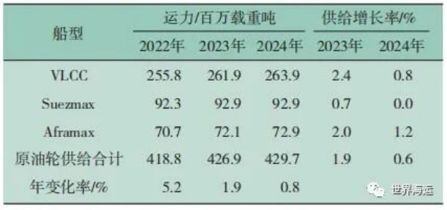 2  2023年全球油輪各船型運力匯總表