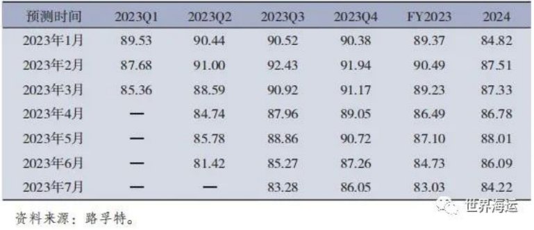 此外,對經(jīng)濟衰退的擔(dān)憂預(yù)期和加息可能導(dǎo)致原油期貨市場波動并引發(fā)避險情緒,一些能源投資者和交易商或?qū)⒖s減倉位,但現(xiàn)貨原油的價格在2023年下半年需求增長和供應(yīng)緊張的情況下仍將獲得一定的支撐。在當(dāng)前的形勢下,國際油價向上運行的動力不足,短期內(nèi)依然存在向下調(diào)整的潛在動力??傮w來看,國際油價在歷史較高水平運行,一定程度上助推了全球性通貨膨脹,主要經(jīng)濟體的貨幣政策可能從寬松轉(zhuǎn)向收緊;如果貨幣政策緊縮的步伐加快、加息力度增加,可能使全球經(jīng)濟增長放緩,在降低原油需求的同時提升原油期貨交易的成本,有利于國際油價向下調(diào)整。路孚特最新預(yù)測,2023年第三、四季度布倫特均價分別為83.28美元/桶和86.05美元/桶,2023年全年為83.03美元/桶,見表9。