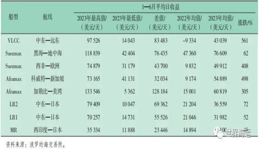 1  2023年上半年油輪各航線日收益表現(xiàn)