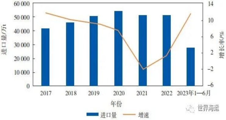 2  2017—2023年上半年中國原油進口及增長情況