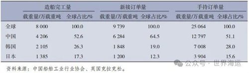 表1 2023年全球三大造船指標情況