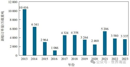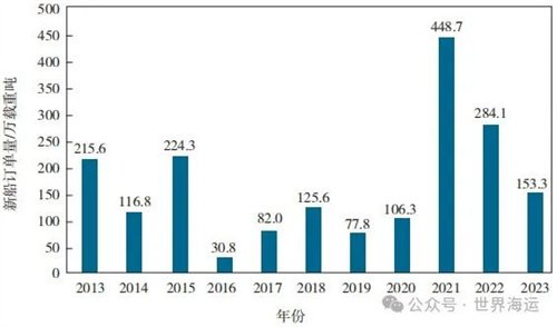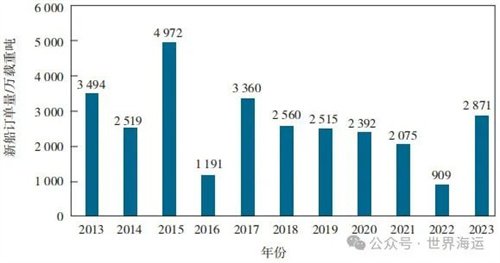 圖4 2013—2023年散貨船市場新船訂單量變化情況